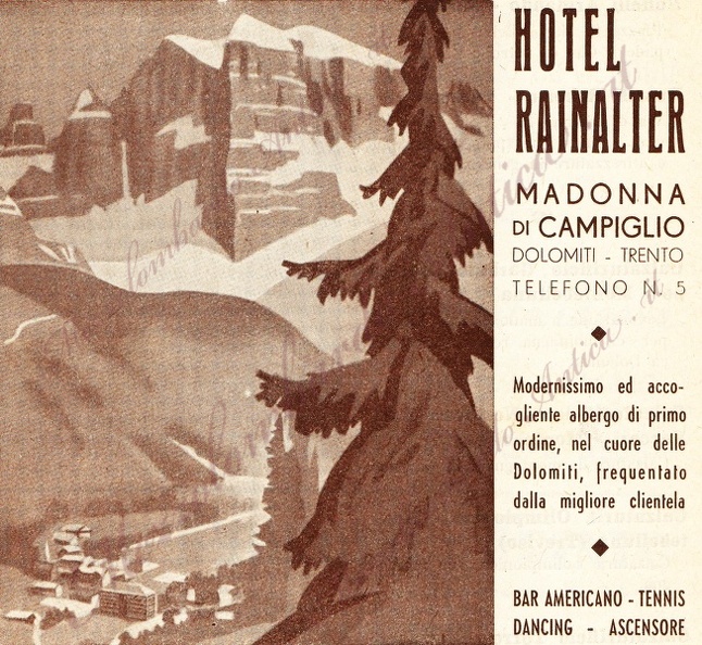 Inserto pubblicitario, opera del Sannicolò, all'interno del Catalogo ufficiale della I Fiera internazionale per l'equipaggiamento turistico-alpinistico, svoltasi a Trento nell'agosto del 1948
